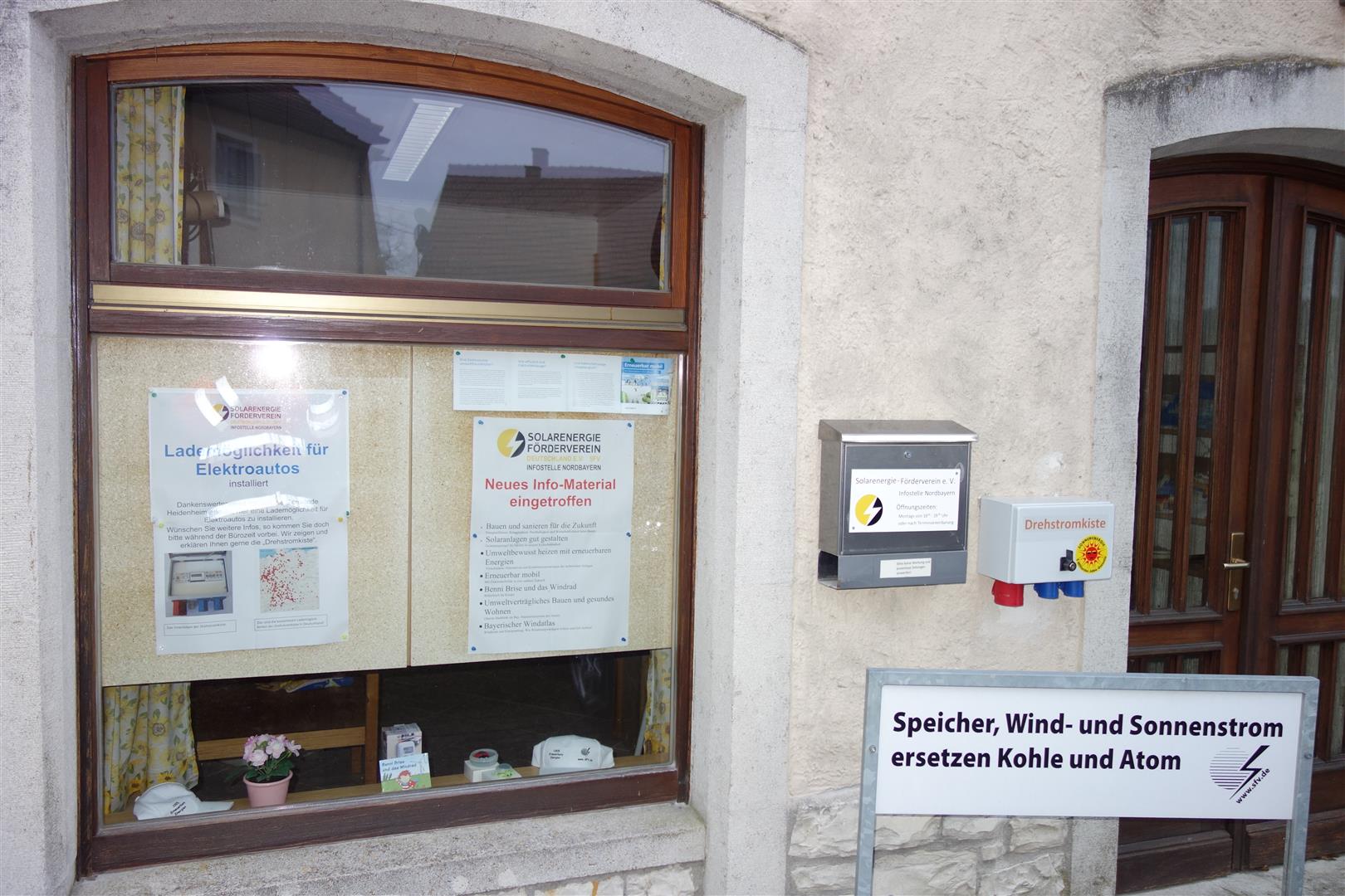 Dankenswerterweise hat uns die Gemeinde Heidenheim erlaubt, an unserem SFV-Büro eine Lademöglichkeit für Elektroautos zu installieren. Wünschen Sie weitere Infos, so kommen Sie doch bitte während der Bürozeit vorbei. Wir zeigen und erklären Ihnen gerne die „Drehstromkiste“.